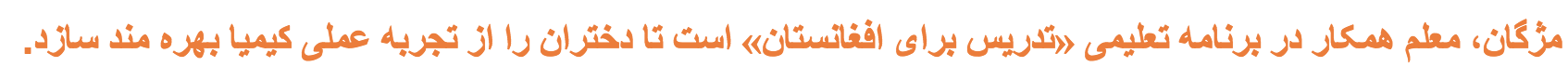 در مناطق دهات افغانستان این معلم مضمون کیمیا راه حل برای لابراتوار مسدود مکتب وی تلقی میگردد